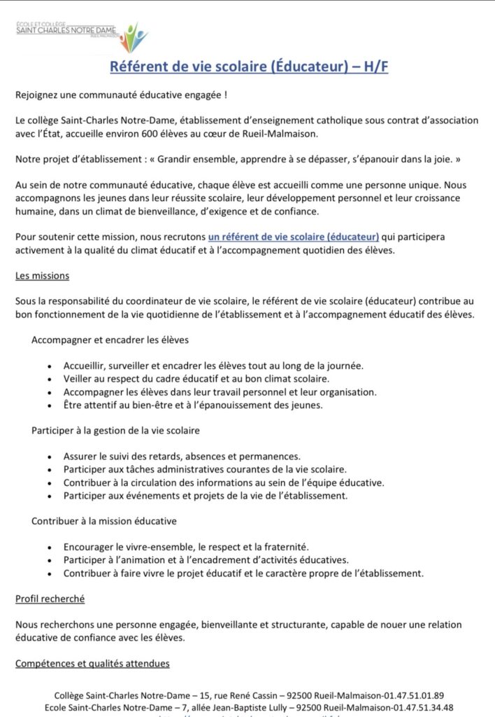 Le groupe scolaire Saint-Charles-Notre-Dame, établissement catholique d’enseignement sous contrat avec l’Etat, propose à tous les enfants et les jeunes qui lui sont confiés, de vivre dans un climat de respect des autres, de simplicité, d’effort et de découverte de la vie du Chrétien en se référant à l’Evangile.